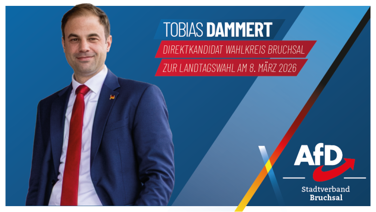 Wir haben ihren Kandidaten für die Landtagswahl im Wahlkreis Bruchsal gewählt. Die anwesenden Mitglieder sprachen sich geschlossen für Tobias Dammert aus. Der 41-jährige studierte Ökonom tritt damit offiziell als Direktkandidat